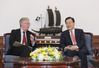 정의용 청와대 국가안보실장이 지난해 7월24일 청와대에서 존 볼턴 당시 미국 백악관 국가안전보장회의(NSC) 보좌관과 대화하고 있다. 청와대사진기자단 |