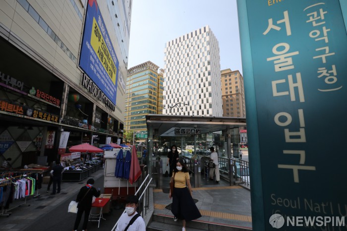 [서울=뉴스핌] 백인혁 기자 = 서울시가 '서부선 경전철' 민간투자사업이 한국개발연구원 공공투자관리센터(KDI PIMAC)의 민자적격성 조사를 통과했다고 22일 밝혔다. 서울시가 2000년 수립한 '교통정비 중기계획'에 처음 반영된 이후 20년만이다. 서부선 경전철은 은평구 새절역(6호선)에서 관악구 서울대입구역(2호선)까지 총 연장 16.15KM, 16개 정거장으로 건설된다. 새절역에서 서울대까지 22분만에 주파 가능하며, 2023년 착공을 시작해 2028년 개통을 목표로 하고 있다. 사진은 이날 서울대입구역에서 지하철을 이용하는 시민들의 모습. 2020.06.22 dlsgur9757@newspim.com