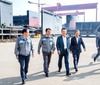 송종욱 광주은행장(사진 오른쪽 세번째)이 22일 정대성 대한조선 대표이사(사진 왼쪽 두번째) 등 관계자들과 함께 대한조선 사업장을 둘러보고 있다./사진제공=JB금융그룹 |