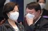추미애 법무부 장관과 윤석열 검찰총장이 22일 청와대 여민관에서 열린 제6차 공정사회 반부패정책협의회에 참석해 앉아 있다. 청와대 사진기자단 |