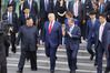 문재인 대통령과 김정은 북한 국무위원장, 도널드 트럼프 미국 대통령이 지난해 6월30일 오후 판문점 남쪽 자유의 집에서 회동한 뒤 함께 군사분계선으로 이동하고 있다. 판문점/김정효 기자 hyopd@hani.co.kr |