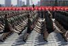 지난 2018년 9월 9일 북한 평양 김일성 광장에서 열린 북한 정권수립 70주년(9·9절) 기념 열병식에서 인민군 병사들이 발을 높이들며 행진하고 있다. 평양=AP·연합뉴스 |