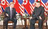 도널드 트럼프 미국 대통령(왼쪽)과 김정은 북한 국무위원장이 지난해 2월 27일 하노이 2차 북-미 정상회담에서 대화를 나누고 있다. 하노이=AP 뉴시스 |