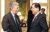 작년 4월 백악관 회동 당시 - 정의용 청와대 국가안보실장은 존 볼턴 전 미국 백악관 국가안보보좌관이 회고록에서 밝힌 한국과 미국, 그리고 북한의 막후 협의 과정이 "사실을 크게 왜곡하고 있다"고 22일 밝혔다. 사진은 2019년 4월 미국 워싱턴 백악관에서 열린 한미 정상회담에서 만나 대화하고 있는 볼턴 전 보좌관과 정 실장. /연합뉴스 |