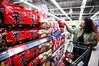 중국 대형마트에서 '신라면' 제품을 고르는 소비자 [제공=농심] |