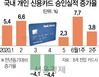 23일 카드업계에 따르면 신한·삼성·KB국민·현대·롯데·우리·하나·BC카드 등 8개 전업 카드사의 국내 개인 신용카드 승인실적은 이달 첫째 주(3~9일) 9조5,079억원으로 1년 전 같은 기간보다 7.7% 늘었다. 최근 3년 평균 증가율 5.6%에 견주면 40% 가까이 높은 증가폭이다.