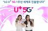 LG유플러스 모델들이 지난 4월 5G 상용화 1주년을 맞아 자사 서비스를 소개하고 있다./LG유플러스 제공 |