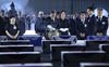 문재인 대통령과 부인 김정숙 여사가 25일 서울공항에서 열린 6·25전쟁 70주년 행사에서 유족과 함께 분향하고 있다. [연합] |