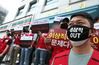 26일 오전 이스타항공 조종사노조원들이 임시주주총회가 열리는 서울 양천구 이스타항공 본사 앞에서 피케팅을 하고 있다. 연합뉴스 제공 |