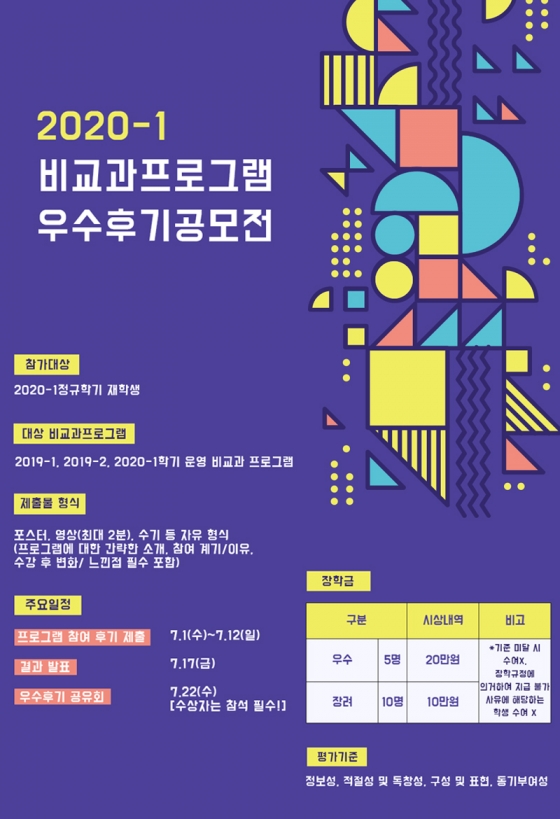 공모 내용은 지난해 1·2학기와 올해 1학기 중 직접 참여한 비교과 프로그램에 대한 후기를 작성해 접수하면 된다.