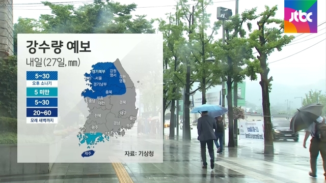 27일은 새벽과 아침 중부 지역을 중심으로 비 소식이 있습니다.