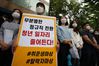 인천국제공항공사노동조합 소속 조합원들이 25일 오후 서울 청와대 인근에서 열린 기자회견에서 비정규직 보안검색 요원들의 정규직 전환 관련 입장을 발표하며 손팻말을 들고 있다. (사진=연합뉴스) |