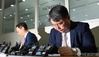 [서울=뉴스핌] 이한결 기자 = 최종구 이스타항공 대표(오른쪽)가 29일 오후 서울 강서구 이스타항공 본사에서 M&A 중요사항 발표 관련 긴급 기자회견을 열고 고개를 숙이고 있다. 한편 이스타항공의 창업주인 이상직 더불어민주당 의원이 이스타홀딩스를 통해 보유하고 있는 가족들의 이스타항공 지분 모두를 회사 측에 헌납하겠다고 밝혔다. 2020.06.29 alwaysame@newspim.com