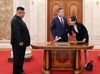 2018년 9월 18일 문재인 대통령이 평양 조선노동당 중앙위원회 본부 청사에서 방명록에 서명하려 하자 김여정 제1부부장이 필기구 등을 준비하고 있다. 평양사진공동취재단 |