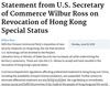 윌버 로스 미국 상무부 장관은 이날 발표한 성명에서 “중국 공산당의 홍콩에 대한 새로운 보안 조치 부과로 인해 그 영토의 자치권이 약화되는 동시에 미국의 민감한 기술이 인민해방군 또는 국가보안부에 의해 전용될 위험이 증가할 것”이라면서 “이런 위험은 미국이 받아들이기를 거부하는 것들이며, 홍콩에 대한 특별 지위를 폐지하는 결과를 낳았다”고 밝혔다.