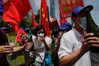 한 쪽에선 축배, 한 쪽에선 게릴라 시위…전운 감도는 홍콩 중국 전국인민대표대회 상무위원회가 홍콩 국가보안법안을 통과시킨 30일 홍콩의 친중국 시위대가 길거리에서 샴페인을 부어 마시며 입법을 환영하고 있다(왼쪽 사진). 반면 게릴라 시위 장소가 된 홍콩의 한 쇼핑몰에서는 경찰의 삼엄한 감시 아래 한 시민이 보안법 반대 구호를 외치고 있다. 홍콩 | 로이터·EPA연합뉴스 |