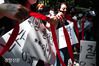 한국여성단체연합, 한국사이버 성폭력 대응센터, n번방에 분노한 사람들 등 시민사회 단체 회원들과 n번방 사건 피해자 공동변호인단이 11일 서울 서초구 서울지방법원 동문 앞에서 ‘우리의 연대가 너희의 공모를 이긴다-텔레그램 성착취 공동대책위원회 기자회견’을 하고있다. 이들은 기자회견 직후 참석자 모두를 하나의 빨간 줄로 이어 함께 연대하고 있다는 의미의 퍼포먼스를 벌였다. / 이준헌 기자 ifwedont@kyunghyang.com |