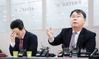 최종구 이스타항공 대표(오른쪽)가 29일 서울 강서구 본사에서 기자회견을 하고 있다. 이스타항공의 창업주인 이상직 더불어민주당 의원은 이날 참석하지 않았다. 왼쪽은 김유상 경영본부장. 연합뉴스 |