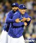 [OSEN=다저스타디움(LA 미국 캘리포니아주), 지형준 기자]경기후 다저스 맷 켐프와 류현진이 장난을 치며 승리 하이파이브를 하기 위해 그라운드에 들어서고 있다. /jpnews@osen.co.kr |