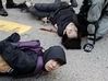 11일(현지시간) 홍콩 사이완호에서 시위 중 한 참가자(위)가 경찰이 쏜 실탄에 가슴 부분을 맞아 피를 흘리며 쓰러져 있다. 경찰과 가면 쓴 시위대의 대치 현장이 페이스북에 생중계된 가운데 최소 한 명이 경찰이 쏜 총에 다쳤으며 출퇴근 시간 시위로 혼란이 빚어졌다. 연합뉴스 |