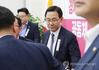 민주당 규탄 리본 단 통합당 주호영 원내대표 |