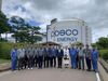 포스코에너지와 국내 주요 조선사 관계자들이 광양LNG터미널 LNG선박 시운전 서비스 계약을 맺고 LNG탱크 앞에서 기념 촬영을 하고 있다. 사진=포스코에너지. |