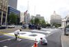 1일 미 뉴욕 맨해튼에서 인부들이 '흑인 목숨도 소중하다(Black Lives Matter)'는 문구를 도로에 새기고 있다. /EPA 연합뉴스 |