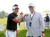1라운드 티샷에 앞서 팔꿈치 악수를 나누는 박상현(왼쪽)과 구자철 KPGA 회장. |