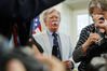 존 볼턴 전 미국 백악관 국가안보보좌관은 2일(현지시간) 도널드 트럼프 대통령이 오는 11월 대선을 앞두고 ‘10월의 서프라이즈’로 김정은 북한 국무위원장과의 북미정상회담을 추진할 가능성이 있다고 내다봤다. 볼전 전 보좌관이 현직 시절 백악관에서 브리핑하는모습. [AP] |