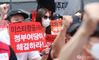 [서울=뉴스핌] 김학선 기자 = 이스타항공 노조원들이 4일 오후 서울 여의도 민주당사 앞에서 이스타항공 운항재개 촉구 결의대회를 열고 있다. 2020.07.04 yooksa@newspim.com 저작권자(c) 글로벌리더의 지름길 종합뉴스통신사 뉴스핌(Newspim), 무단 전재-재배포 금지