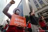 [서울=뉴스핌] 김학선 기자 = 이스타항공 노조원들이 4일 오후 서울 여의도 민주당사 앞에서 이스타항공 운항재개 촉구 결의대회를 열고 있다. 2020.07.04 yooksa@newspim.com