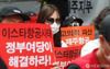 [서울=뉴스핌] 김학선 기자 = 이스타항공 노조원들이 4일 오후 서울 여의도 민주당사 앞에서 이스타항공 운항재개 촉구 결의대회를 열고 있다. 2020.07.04 yooksa@newspim.com