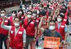[서울=뉴시스]김명원 기자 = 이스타항공노조원들이 4일 서울 영등포구 여의도 민주당사 앞에서 이스타항공 운항재개 촉구 결의대회를 하고 있다. 2020.07.04. kmx1105@newsis.com |