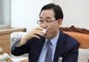 주호영 미래통합당 원내대표가 5일 서울 여의도 국회에서 기자간담회를 하기 전 차를 마시고 있다. / 사진제공=뉴시스 |