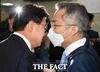 황운하 더불어민주당 의원(왼쪽)과 최강욱 열린민주당 원내대표가 연일 검찰을 비판하는 취지의 글을 페이스북에 게시했다. 사진은 지난 5월20일 오전 서울 여의도 국회 헌정기념관에서 열린 '제21대 국회 초선의원 의정연찬회'에 참석해 대화하는 두 사람의 모습. /배정한 기자 |