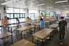 3일 오전 광주 북구 한 초등학교 급식실에서 운암1동 행정복지센터 관계자들이 오는 6일부터 재개되는 학생 등교 수업에 대비해 급식실을 소독하고 있다.(사진=연합뉴스) |