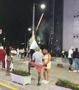 해운대 번화가서 폭죽 터뜨리는 외국인들 |
