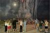 주말인 4일 부산 해운대해수욕장에 모인 외국인들이 폭죽을 쏘며 소동을 일으켰다.(사진=독자 제공) |