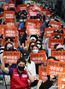 (서울=뉴스1) 민경석 기자 = 공공운수노조 이스타항공 조종사 지부 등 조합원들이 8일 오후 서울 마포구 동교동 애경그룹 본사 앞에서 열린 이스타항공 인수 촉구 집회에서 구호를 외치고 있다.