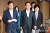 미래통합당 김도읍 의원을 비롯한 법제사법위원회 위원들이 8일 서울 여의도 국회 소통관에서 법사위 개회 및 윤석열 검찰총장 출석요청 관련 기자회견을 마친 후 회견장을 나서고 있다. / 사진제공=뉴시스 |
