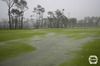 호우로 물이 찬 18번홀 . [사진= KLPGA]