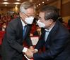 지난 5월26일 오후 서울 여의도 국회 의원회관에서 열린 더불어민주당 이용득 의원 출판기념회에서 박원순 서울시장(오른쪽)과 이재명 경기도지사가 인사하고 있다. 연합뉴스 |