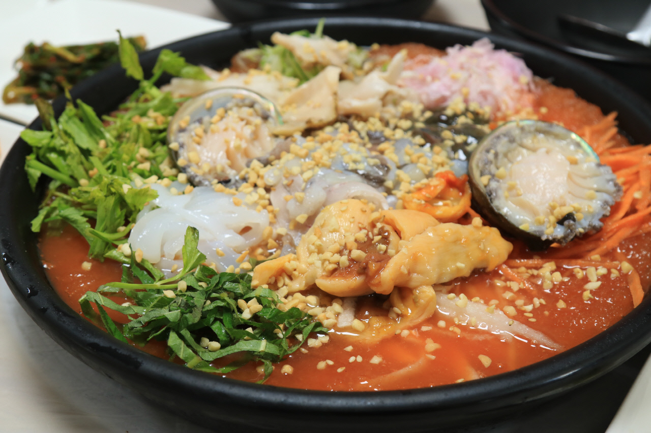 사천시 삼천포 팔포 음식특화지구, 100명 해녀가 가져온 다양한 해산물 가득