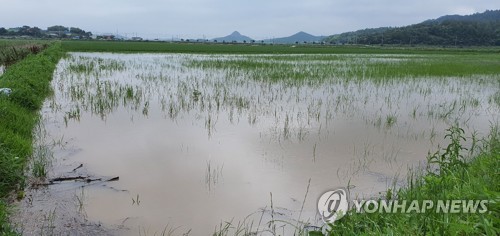 (진도=연합뉴스) 13일 오전 전남 진도군 군내면 한 농경지가 집중호우로 침수돼 있다. 2020.7.13 [전남 진도군 제공. 재판매 및 DB 금지] iny@yna.co.kr <저작권자(c)연합뉴스. 무단전재-재배포금지.>