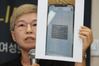 고 박원순 서울시장을 성추행 혐의 등으로 고소한 피해여성을 대리하는 김재련 변호사가 13일 오후 서울 은평구 녹번동 한국여성의전화 사무실에서 연 '서울시장에 의한 위력 성추행 사건 기자회견'에서 피해여성을 텔레그램 비밀 대화방에 초대한 스마트폰 화면 사진을 공개하고 있다. 사진=서동일 기자
