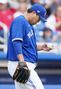 미국 플로리다주 더니든 TD 볼파크에서 열린 미네소타 트윈스와 토론토 블루제이스의 시범경기. 1회초 토론토 선발 류현진이 안타를 허용한 뒤 공을 확인하고 있다. 연합뉴스 |