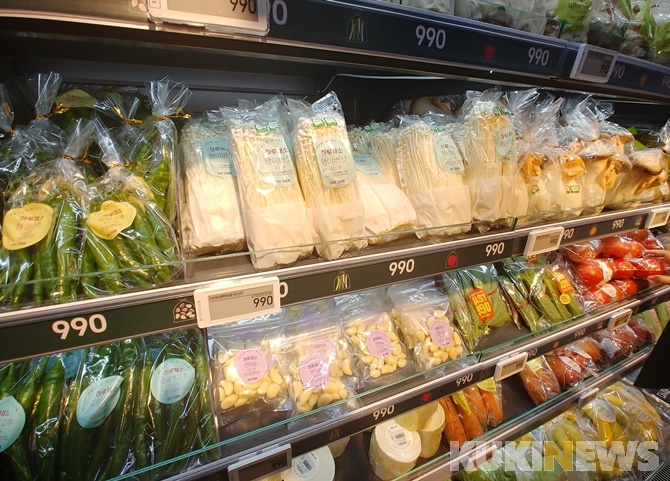 16일 방문한 서울시 마포구 노고산동의 이마트 신촌점. 채소 매대 앞에서 소포장 토마토 상품을 구입하던 대학원생 김선화(여)씨는 매장의 특징을 묻는 질문에 이같이 답했다. 장바구니에는 밀키트(간편요리세트)와 냉동식품 말고도 물티슈와 샴푸 등 생활용품도 담겨 있었다. 김씨는 “모처럼 장을 보러 와서 그런지 다른 할인 제품에도 손이 가게 됐다”라고 말했다.