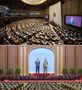 위 사진은 지난 16일 개원한 21대 국회 본회의장. 문재인 대통령이 개원 연설을 하고 있다. 아래 사진은 작년 8월29일 평양 만수대의사당에서 열린 최고인민회의 제14기 제2차회의. 회의장 뒤편에 김일성·김정일 부자의 거대 입상이 보인다. /뉴시스 조선중앙통신 |