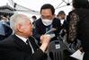 19일 서울 종로구 이화장에서 열린 이승만 전 대통령 서거 55주기 추모식에서 미래통합당 주호영 원내대표와 유족대표 이인수 박사가 인사하고 있다. /연합뉴스 |