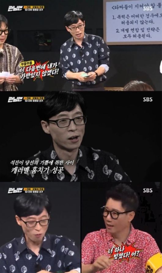 [헤럴드POP=이영원 기자]유재석이 지석진의 캐러멜을 훔쳤다.
